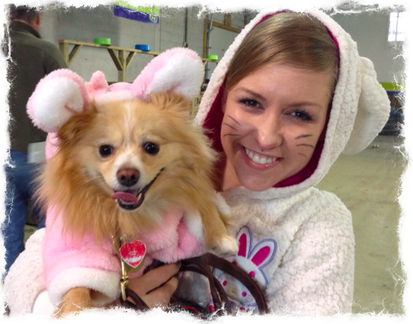 Today I took Sakura to a Halloween dog competition. Your mom took Sakura to a Halloween party. We went to the exact same place at exact the same time.