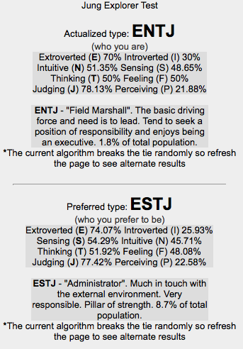 Contrary to what we were told in class, I definitely think MBTI results can change over time. I dated my MBTI test to “January 22, 2014”. If all goes well, in ten years I am going to link my 2024 post to this page and reflect on the change (or lack thereof).